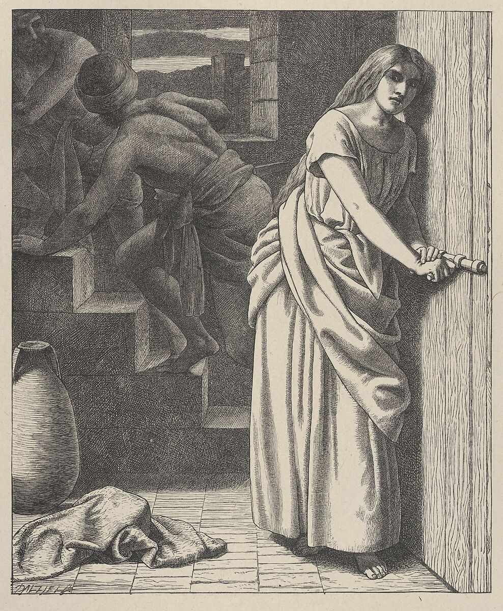 Then she let them down by a rope through the window, for her house was built into the city wall, so that she lived in the wall. And she said to them, “Go into the hills, or the pursuers will encounter you, and hide there three days until the pursuers have returned. Then afterward you may go your way.” The men said to her, “We will be guiltless with respect to this oath of yours that you have made us swear. Behold, when we come into the land, you shall tie this scarlet cord in the window through which you let us down, and you shall gather into your house your father and mother, your brothers, and all your father’s household. Then if anyone goes out of the doors of your house into the street, his blood shall be on his own head, and we shall be guiltless. But if a hand is laid on anyone who is with you in the house, his blood shall be on our head. But if you tell this business of ours, then we shall be guiltless with respect to your oath that you have made us swear.” And she said, “According to your words, so be it.” Then she sent them away, and they departed. And she tied the scarlet cord in the window.